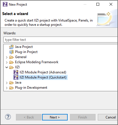 File > New or type Alt + f.New IIZI Module Project (Quickstart).After the New IIZI Module Project wizard is open, repeat the instructions as explained in the section above Creating your first iiziApp.