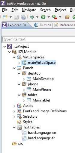 The IIZI Explorer is used instead of the Eclipse Package Explorer because it is tailored for the IIZI Platform. If you choose to enable additional connector plug-ins, there will be additional folders displayed in the IIZI Explorer for the respective connector.