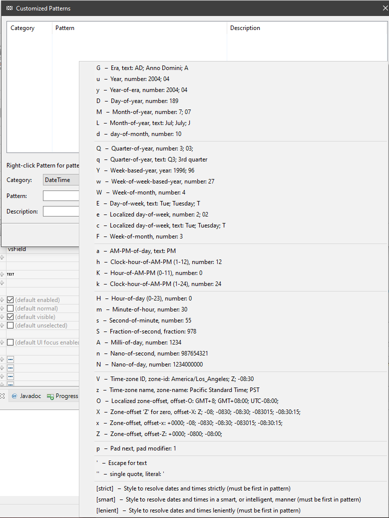 - Pattern: the pattern to use for the formatter of the value type, e.g.