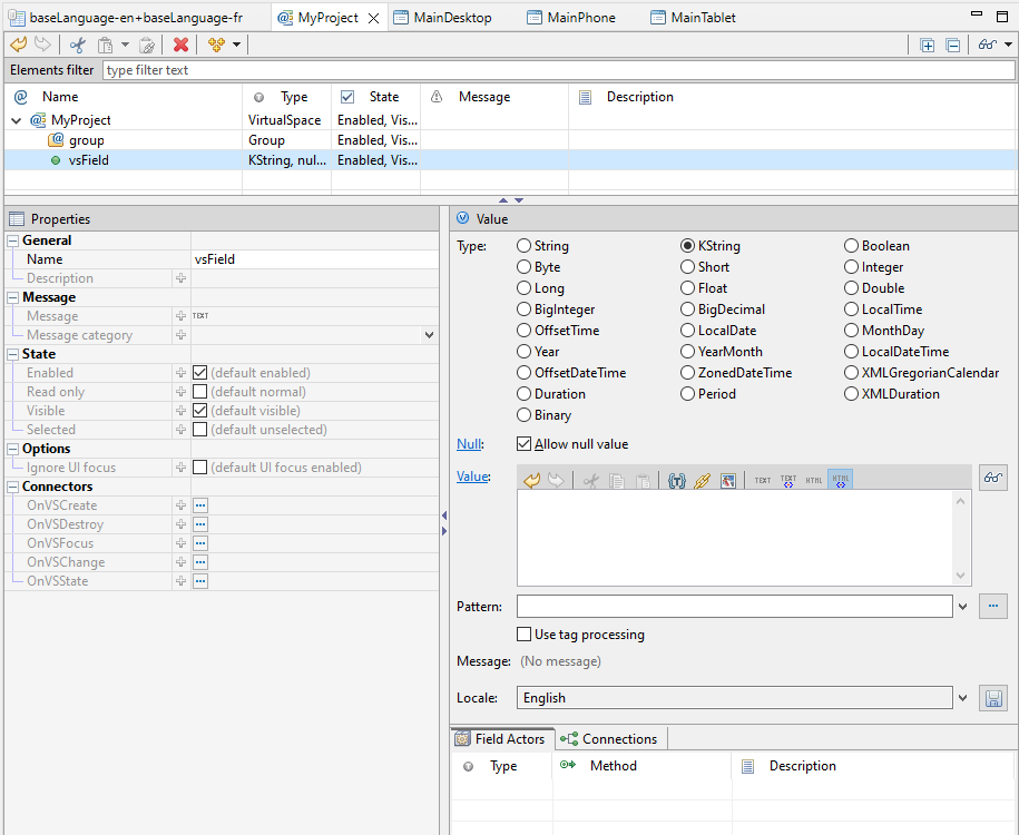 - Locale: combobox used for testing purposes to see how a value would look like in a specific locale. The tooltip of the Value entry field shows a preview of the value with the pattern in the specified locale; you can also toggle the preview to always be shown.